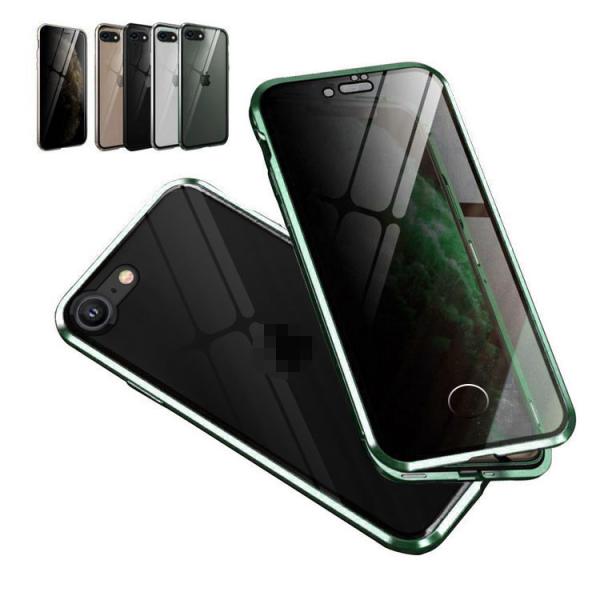iPhone SE 第3世代/第2世代 ケース カバー 強化ガラス 耐衝撃 全面保護 覗き見防止 前後ガラス アルミ バンパー クリア 透明 両面 前後 ガラス マグネット