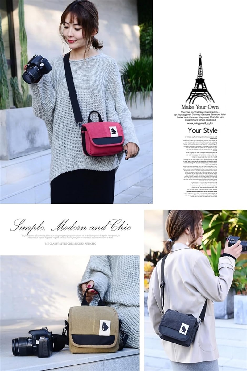 一眼レフやミラーレスカメラを収納できる、小型軽量でおしゃれなショルダーカメラバッグです。