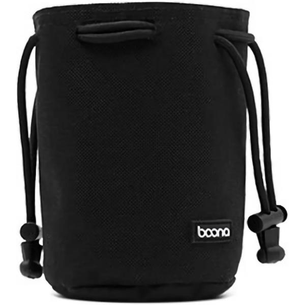 レンズポーチ 巾着 レンズケース 一眼レフ ミラーレス ソフト レンズ収納 広角 標準ズーム 望遠(ブラック, S)