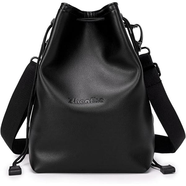 カメラバッグ 巾着 ショルダー カメラポーチ カメラ収納 カメラケース ミラーレス 一眼レフ(ブラック, M)