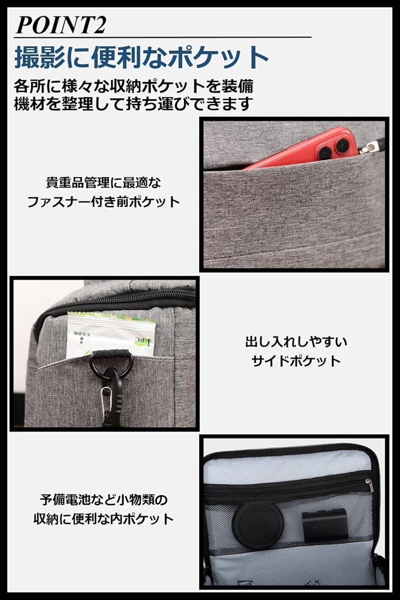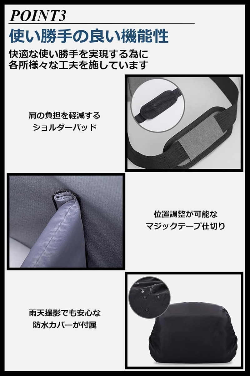 カメラバッグ ショルダー 大容量 軽量 肩掛け 斜め掛け 一眼レフ ミラーレス おしゃれ 仕切り調節可能 防水カバー(グレー, M)