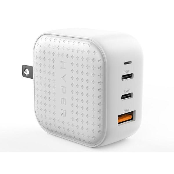 - 【世界最小クラス】超小型66W GaN ACアダプタ「HyperJuice GaN 66W USB-C ACアダプタ」■世界最小クラスの66W GaNアダプタ窒化ガリウム(GaN)半導体材料による高電圧の制御とスイッチングの高速化で実現した、世界最小クラスの66W ACアダプタです。■急速充電対応3つのポート、3台同時充電最大合計66Wの高出力仕様。USB-Cポート(Power Delivery 3.0対応 各最大65W出力)×2と、USB-A(Quick Charge 3.0対応 最大36W出力)ポートを搭載。これらの3つのポートで3台同時に充電できます。※GaN充電器の仕様で、新規のデバイスが接続されると、すでに接続されてある機器の給電を一旦停止し、新たに電力配分を行います。一度、給電が停止されますが、故障ではありません。■折りたたみ式プラグで持ち運びに便利コンセントのプラグ部分は本体に折りたたんで収納可能なビルトイン式。バッグに入れても他のものを傷つけることなく、コンパクトにまとまります。煩わしいケーブルのない、持ち運びに便利なデザインです。【注意事項】1. 急速充電は急速充電対応のデバイス、ケーブルを使用した場合のみ可能です。2. 多数のデバイスを同時充電する際は、出力先が増えるため個々のデバイスの充電時間は多少長くなる場合があります。3. デバイスの合計出力は66Wまで、1つのポートの最大出力は65Wまで対応します。