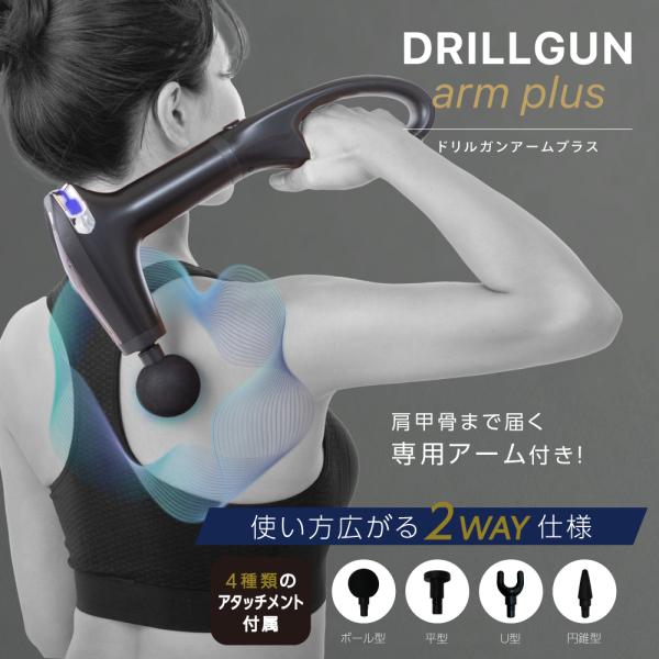 - 商品説明 商品名 ドリルガンアームプラス 内容 本体、ハンドルアーム、アタッチメント4種類、USBケーブル(Type-C)、取扱説明書 サイズ(約) 14.2x33cm(アタッチメントを除く) 重量(約) 583g(アタッチメントを除く) 電源 充電式(リチウムイオン電池1800mAh) 製品仕様 使用温度範囲:-5~40℃ 生産国 中国 特長 ●肩甲骨まで届くアーム付き! ●背中や腰まで楽に全身セルフケア! ●4種類のアタッチメントが体の「あらゆる部位」にフィット! ●女性でも簡単に片手で背中や腰まで楽に全身セルフケアできます。 ●手の届きにくい背中や腰に 専用アームで楽々アプローチ。 ●専用アームを取り外し、ふくらは ぎや太もも、足裏などのケアに。 ●届かなかった背中まで届く!手が届きにくい背中や腰もセルフでケアできる ※仕様・デザインは予告なく変更される場合があります。 ※PC環境により色の見え方が異なる場合があります。 ご使用方法 取扱説明書に記載 使用上の注意 取扱説明書に記載 お届けについて 宅配便で発送されます。(契約時期により宅配業者は表示の業者と異なる場合があります。予めご了承ください。) ※何かしらの理由でお届けできない場合は、不在票が投函されて運送業者に一時保管されます。保管期限が経過した際は当店に返品されてしまいます。その場合、商品代は0円となりますが発送手数料として880円ご請求となりますのでご了承ください。気になるUV対策に!↓↓↓こちらもオススメ↓↓↓ 日差しから守る!↓↓↓こちらもオススメ↓↓↓ ↑↑↑↑↑↑こちらもオススメ↑↑↑↑↑↑