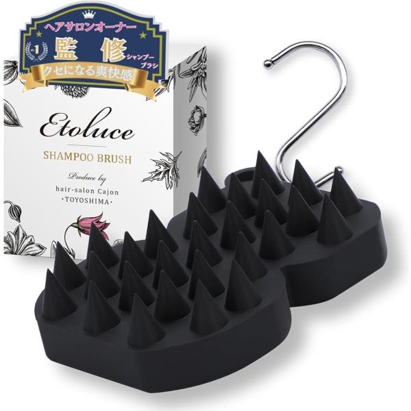 シャンプーブラシ 頭皮マッサージ ヘアサロンオーナー監修人間工学に基づき開発 S字フック付き ヘッドスパ(ブラック, 1個)