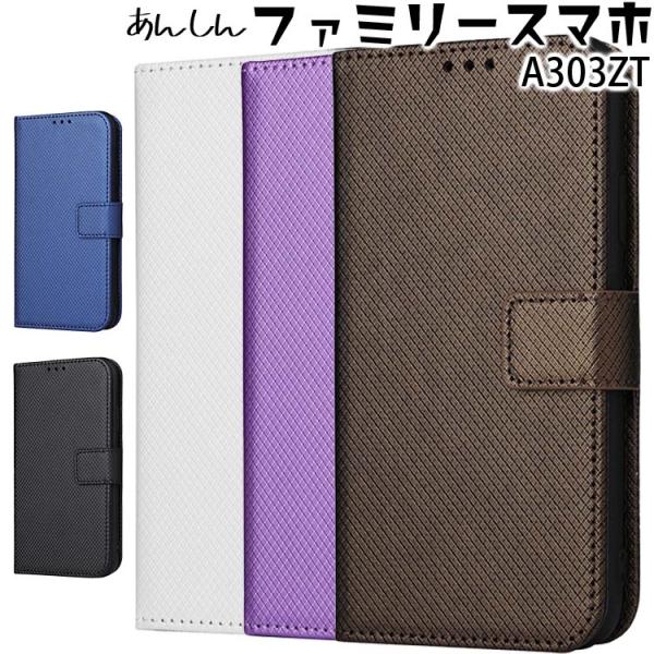 あんしんファミリースマホ ケース 手帳 A303ZT レザー カード収納 合革 シンプル 手帳カバー