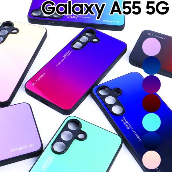 Galaxy A55 5G ケース SC-53E SCG27 背面 グラデーション ガラス ハイブリット ケース TPU ソフトきれい