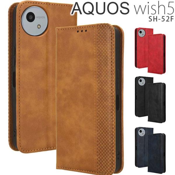 AQUOS wish5 ケース 手帳 SH-52F アンティーク オシャレ レザー カード入れ レザー 合皮 シンプル 北欧風