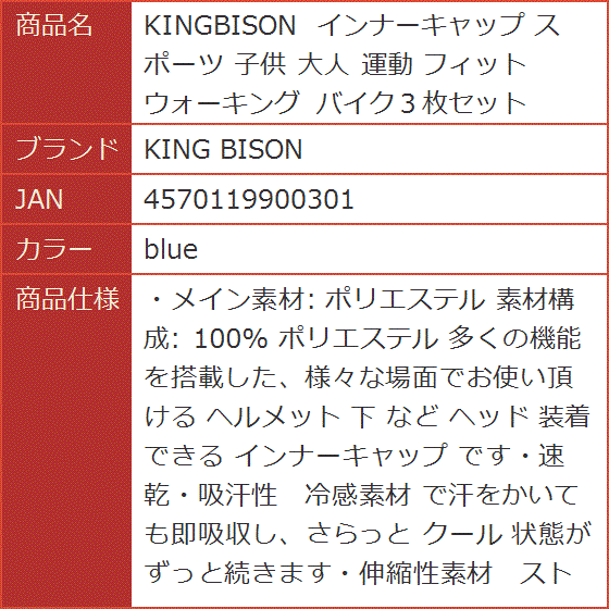 KINGBISON インナーキャップ スポーツ 子供 大人 運動 フィット ウォーキング バイク3枚セット( blue)