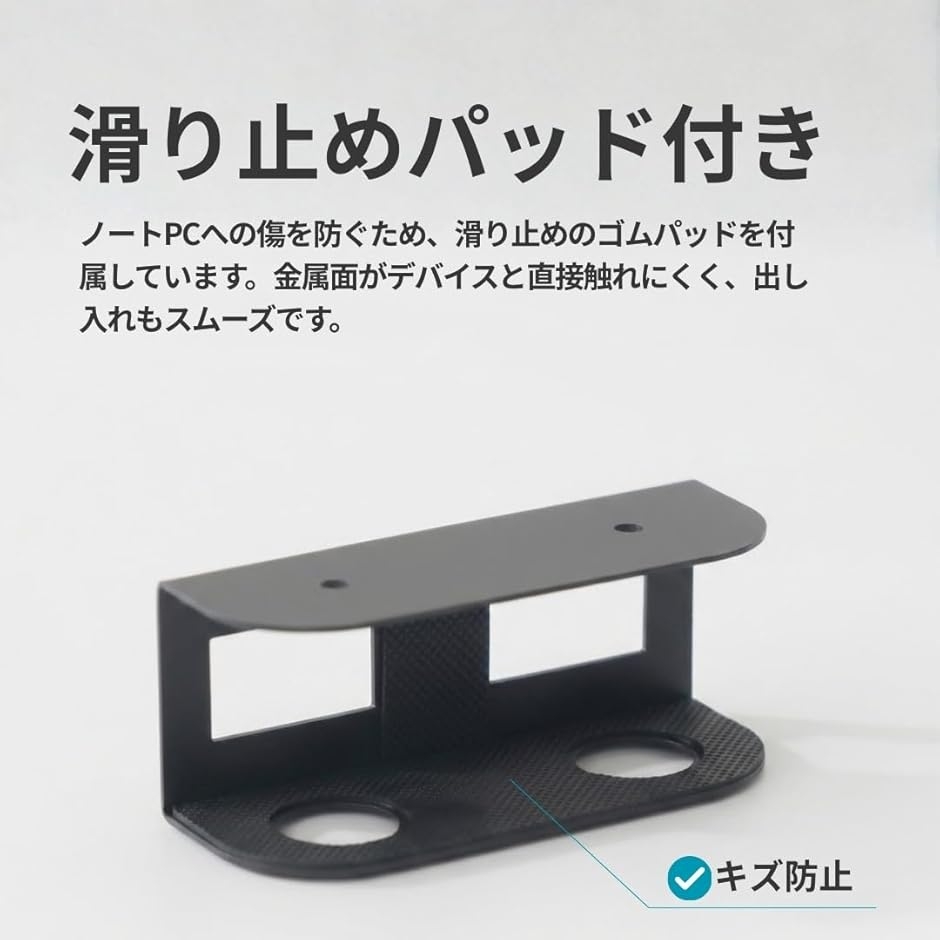 「滑り止めパッド付き」ノートPCへの傷を防ぐため、滑り止めのゴムパッドを付属。
