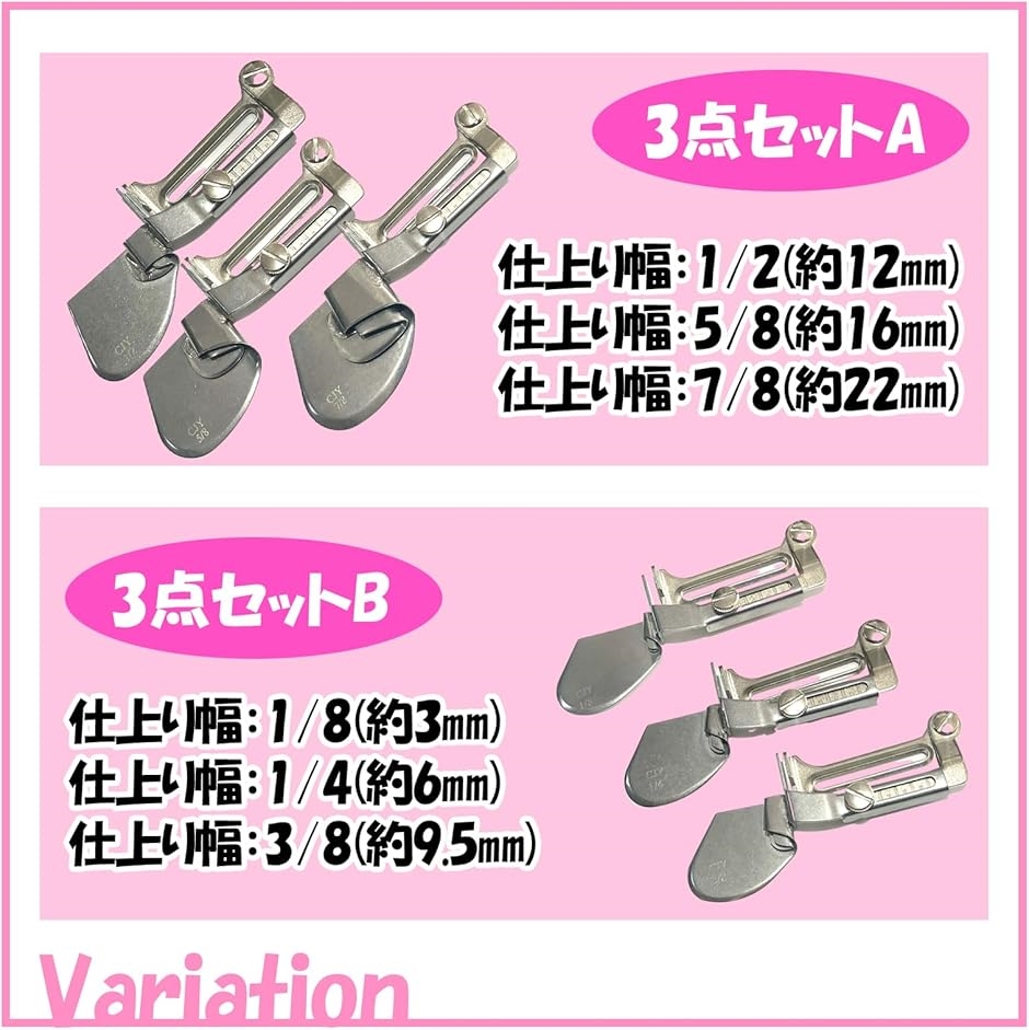 - バリエーションコード : 2bj9svnl5r商品コード2bj9sciqfg商品名ミシン 押さえ 三つ巻 ラッパ 回転 アタッチメント 職業用 家庭用 工業用 裁縫用 裾縫い 3個 セット タイプBブランドTIGRE BLANCサイズ等タイプB職業用 家庭用 工業用ミシンで使用する三つ巻ラッパ(ミシン押さえ)になります。生地を巻き込みながら縫い進めることで三つ折りに仕上げるアイテム。回転式のため途中で生地をラッパから外したりセットが簡単にでき、縫いはじめや縫い割りの部分を超える際の対応がスムーズにできます。カーテン、ベッドシーツ、布団、タオル、衣類などのエッジを効率よくロールすることができます。3個セットとなります。三つ巻幅:1/8(3mm)、1/4(6mm)、3/8(9.5mm)*本商品はミシン本体に取り付けるためのビスは付属しておりません。※ 他ネットショップでも併売しているため、ご注文後に在庫切れとなる場合があります。予めご了承ください。※ 品薄または希少等の理由により、参考価格よりも高い価格で販売されている場合があります。ご注文の際には必ず販売価格をご確認ください。※ 沖縄県、離島または一部地域の場合、別途送料の負担をお願いする場合があります。予めご了承ください。※ お使いのモニタにより写真の色が実際の商品の色と異なる場合や、イメージに差異が生じることがあります。予めご了承ください。※ 商品の詳細(カラー・数量・サイズ 等)については、ページ内の商品説明をご確認のうえ、ご注文ください。※ モバイル版・スマホ版ページでは、お使いの端末によっては一部の情報が表示されないことがあります。すべての記載情報をご確認するには、PC版ページをご覧ください。
