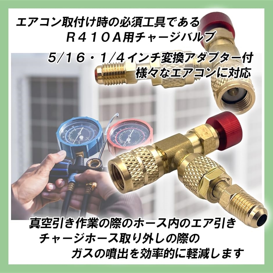 エアコン ガス チャージ バルブ R410a R32 5/16 真空引き 冷媒 1/4 変換 (オス5/16xメス5/16 2個セット)