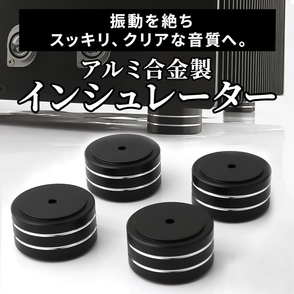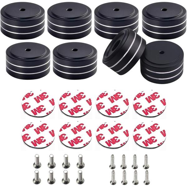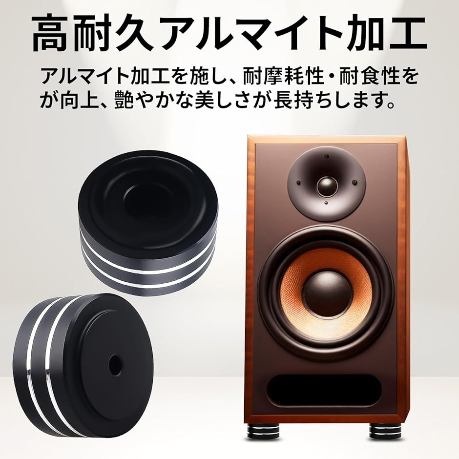 オーディオ アルミ インシュレーター ゴム滑り止め付き スピーカー スパイク受け スピーカースタンド ネジ付き (ブラック, 8個)