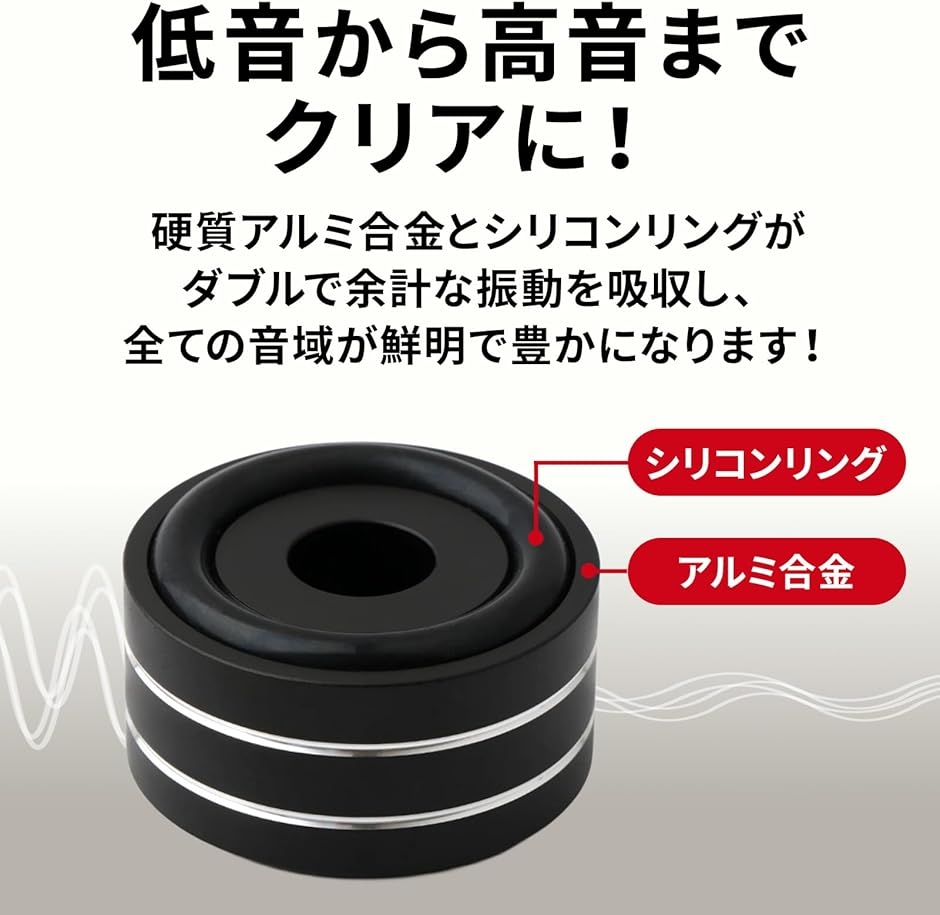 スピーカーやオーディオ機器の下に置くだけで床や棚からの影響を抑え、ノイズを減らし明瞭でクリアな音質を実現。