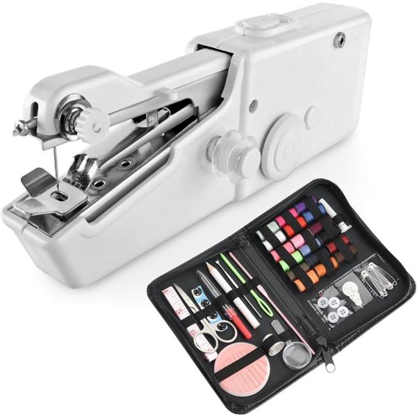 ハンディミシン 電動ミニミシン プロの手縫い機 ミニミシンソーイングセット ミニ電動ミシン ハンドミシン 手持ちミシン(ホワイト)