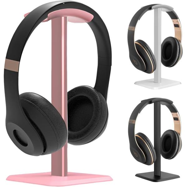 ヘッドホン ホルダー スタンド アルミ合金 ハンガー 湾曲 滑り止め 組み立て簡単(ピンク)