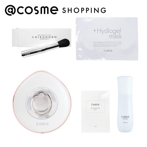- 【セット内容】・エクスイディアル スフェラ 本体セット(パールホワイト)(現品)・エクスイディアル ミストローション 120mL 1本(現品)・ハイドロゲルマスク 1枚(現品)・エクスイディアルロゴ入り熊野筆1本(サンプル)・エクスイディアル バス&フットバスソルト 1箱(サンプル)LEDトリートメント初体験の方におすすめ!!LED美顔器のパイオニア エクスイディアルが作った高機能ハンディーモデル。人気商品「Exideal」の肌悩みに合わせた独自のLEDプログラムに加え、スフェラオリジナルのLEDプログラムを搭載。LEDプログラム(P01 キメ・ハリ/P02 思春期肌/P03 肌荒れ・乾燥肌/P04 輝き肌)とイオン導出・導入、全方位振動の3Dバイブレーション機能との組み合わせで、さらに自信の持てる肌へ導きます。使いやすいこだわりのフォルムや高感度タッチセンサーの安心安全設計で毎日のお手入れに5分のスペシャルケアをお届けします。さらに!!@cosme SHOPPINGだけの特典として、光を吸収して美肌をサポートするミストローション、人気のフェイスマスク、ロゴ入り熊野筆、オリジナルバス&フットバスソルトをプレゼント!ここでしか買えない、美顔器ふくめた豪華5点セットです!【使い方】【美顔器】1.メイクを落し洗顔後、エクスイディアル ミストローション又はお手持ちの基礎化粧品でお肌をしっかりと保湿します。2.電源を入れ、お肌悩みに合わせプログラムを選択します。3. 照射開始。 ご使用中に乾燥を感じたら、エクスイディアル ミストローション等で保湿しながらご使用ください。 ご使用中はLED光を直接のぞき込まないでください。【エクスイディアル ミストローション】メイクを落し洗顔後、お顔全体に吹きかけてください。美顔器と併用する場合は、照射前にお顔全体に吹きかけてください。照射中、乾燥が気になる場合は再度エクスイディアル ミストローションを吹きかけてください。【ハイドロゲルマスク】1.袋の中からマスクを取り出し、フィルムを剥がします。2.お顔に貼り付け、そのまま15〜20分程度おいた後に剥がします。3.顔を包み込むようにしてお肌に残っている美容液を十分になじませてください。【エクスイディアル バス&フットバスソルト】バスソルトとして使用する場合:浴槽の湯(約180L)に、本品1包50gを入れてよくかき混ぜてから入浴してください。フットバスソルトとして使用する場合:浴槽の湯(約20L)に、本品約15g〜20gを入れてよくかき混ぜてからご使用ください。【メーカー・販売業者】@cosme SHOPPING (商品に関するお問い合わせ)【広告文責】株式会社アイスタイルリテール 03-6832-7670