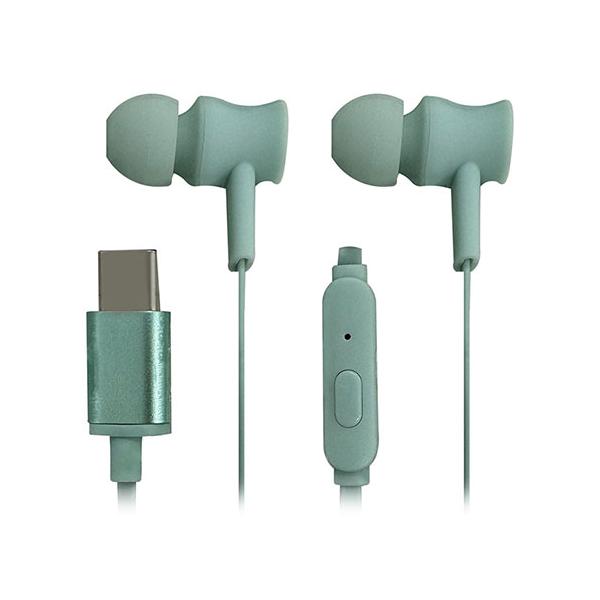 Type-C 有線イヤホン ポーチ付 ミントグリーン 取り寄せ商品