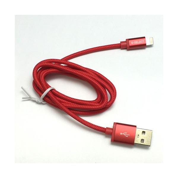 E-SELECT MFI認証ライトニングカラーケーブル (断線しにくいナイロン編みこみタイプ) 1m レッド ES-LTCB1ANR