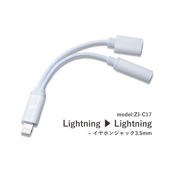 Lightning-3.5mm ステレオ ミニジャック+充電 2in1 変換ケーブル ZJ-C17 (White) code:04317