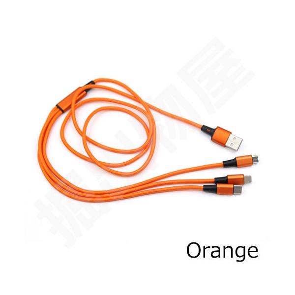 マルチコネクタ USB充電ケーブル type-C Lightning microUSB 対応 YS-216 (カラー:オレンジ) コード 05857