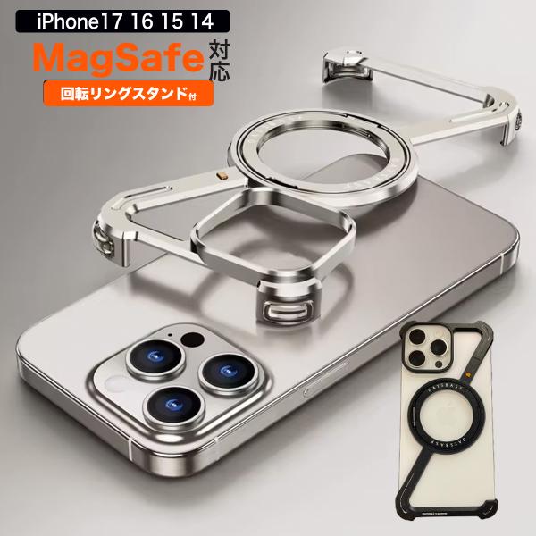 【iPhone17ProMax MagSafe対応】リング付き アルミ バンパー ケース iPhone16 15 14 軽量 メタル フレーム スタンド カバー 耐衝撃 保護