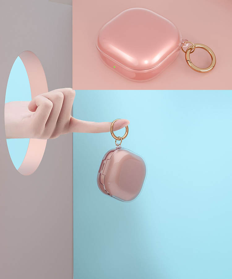 Galaxy Buds 2/Buds2 Pro ギャラクシー ワイヤレスイヤホン 充電穴付きクリア ギャラクシー Buds 2 保護TPU透明カバー カラビナリング付きシンプル
