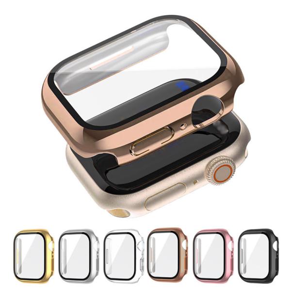 Apple Watch Series 9/8/7 ケース ガラスフィルム ケース カバー 全面保護 液晶カバー メッキ プラスチック+強化ガラス アップルウォッチ シリーズ9/8/7