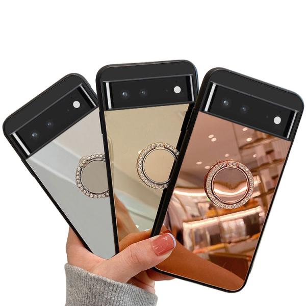 Pixel6a ケース/カバー 背面ミラー リング付き スタンド機能 かわいい ラインストーン キラキラ 鏡面 おしゃれ レディース アンドロイド おすすめ