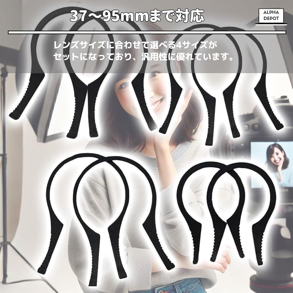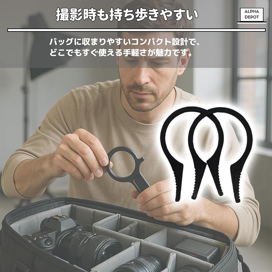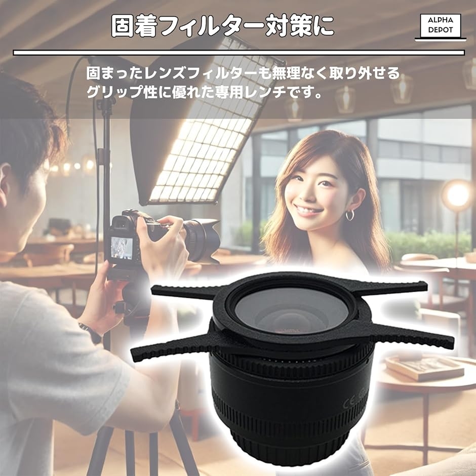 - 商品コード2bui95j4o9商品名レンズフィルター用レンチ 4種セット 4サイズ対応 37-95mm フィルターレンチ フィルター取り外しブランドAlpha Depot「固着フィルターも楽々オフ」滑りにくい構造としなやかな素材で、固くなったレンズフィルターも力をかけすぎずに簡単に取り外せます。「幅広いフィルターサイズ対応」37mm~95mmまでのレンズ径に対応する4種類のレンチをセットにしており、複数の機材に使い回せて便利です。「撮影現場でも扱いやすい」軽量設計なのでカメラバッグにもすっきり収納可能、出先や撮影中の急なメンテナンスにも手間なく使えます。「2個ずつのセット構成」各サイズ2本ずつが付属しており、両手でしっかりホールドすることでフィルターの取り外し作業がより安定します。内容物:レンチ4サイズ(37~46mm/49~58mm/62~77mm/82~95mm)x各2本 / 素材:プラスチック※ 他ネットショップでも併売しているため、ご注文後に在庫切れとなる場合があります。予めご了承ください。※ 品薄または希少等の理由により、参考価格よりも高い価格で販売されている場合があります。ご注文の際には必ず販売価格をご確認ください。※ 沖縄県、離島または一部地域の場合、別途送料の負担をお願いする場合があります。予めご了承ください。※ お使いのモニタにより写真の色が実際の商品の色と異なる場合や、イメージに差異が生じることがあります。予めご了承ください。※ 商品の詳細(カラー・数量・サイズ 等)については、ページ内の商品説明をご確認のうえ、ご注文ください。※ モバイル版・スマホ版ページでは、お使いの端末によっては一部の情報が表示されないことがあります。すべての記載情報をご確認するには、PC版ページをご覧ください。