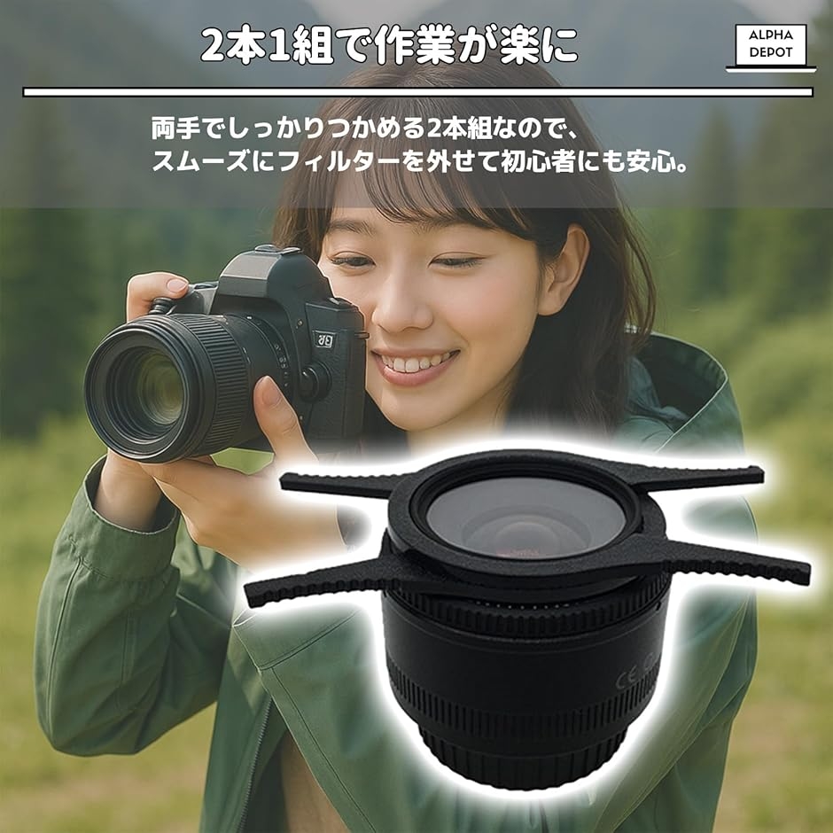 「固着フィルターも楽々オフ」滑りにくい構造としなやかな素材で、固くなったレンズフィルターも力をかけすぎずに簡単に取り外せます。