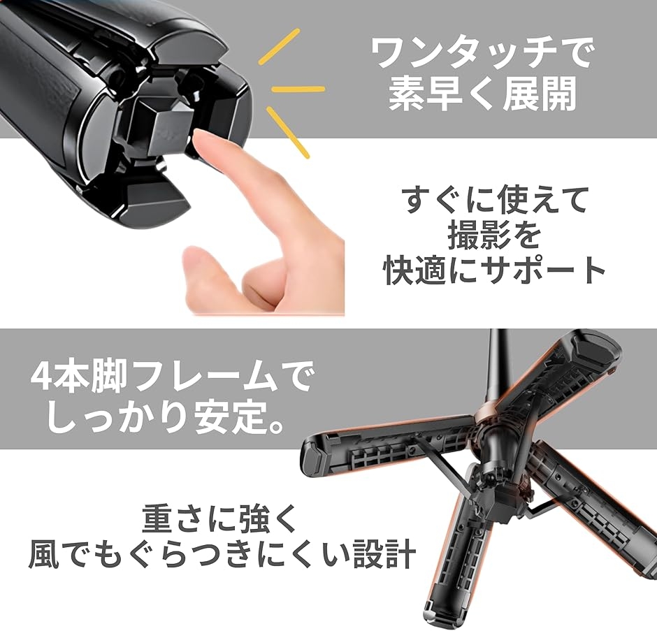 「手持ち・卓上・三脚をこれ1本」三脚一体型で手持ち/置き撮りに対応。