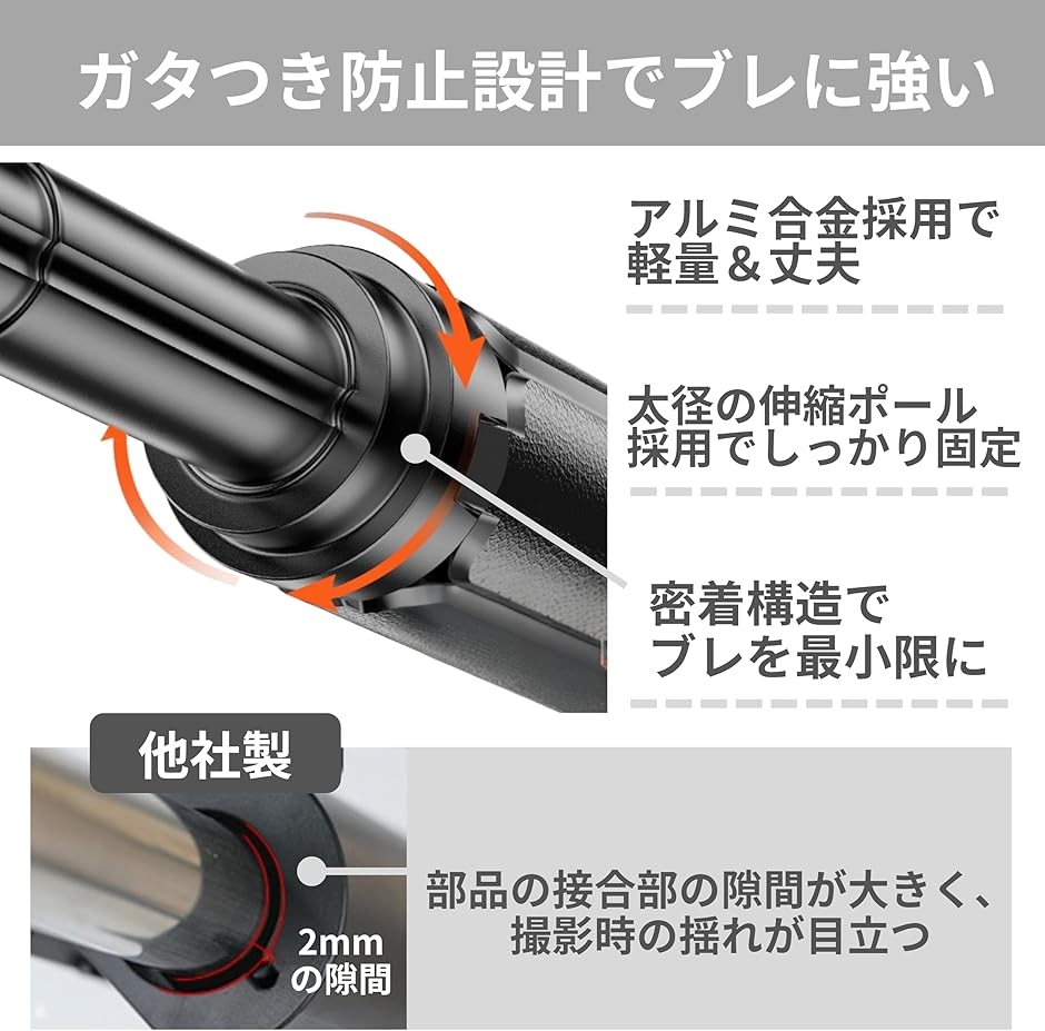 「安定・堅牢なつくり」要所にアルミ合金、太めの伸縮ポール採用。