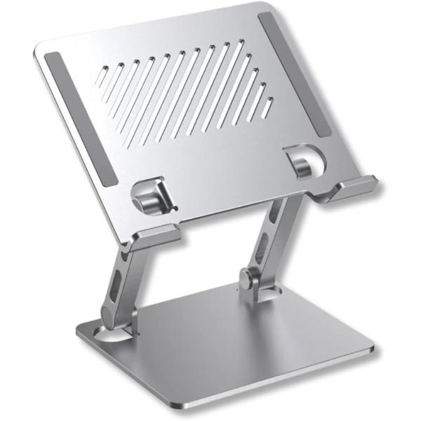 ノートパソコンスタンド 卓上 軽量 タブレットスタンド 角度調整可能 滑り止め タイピング (シルバー)