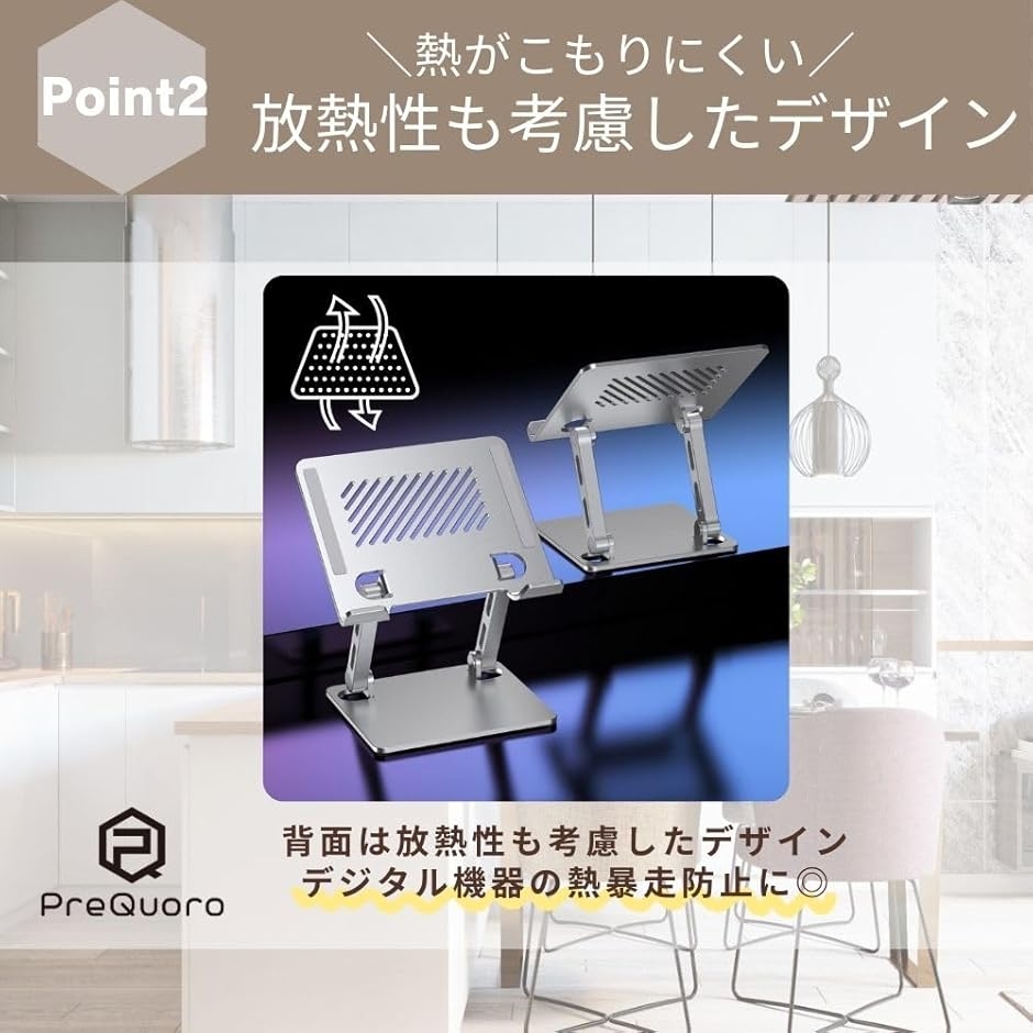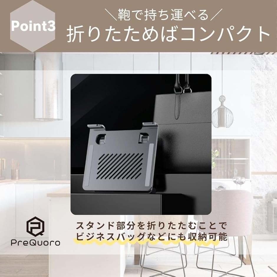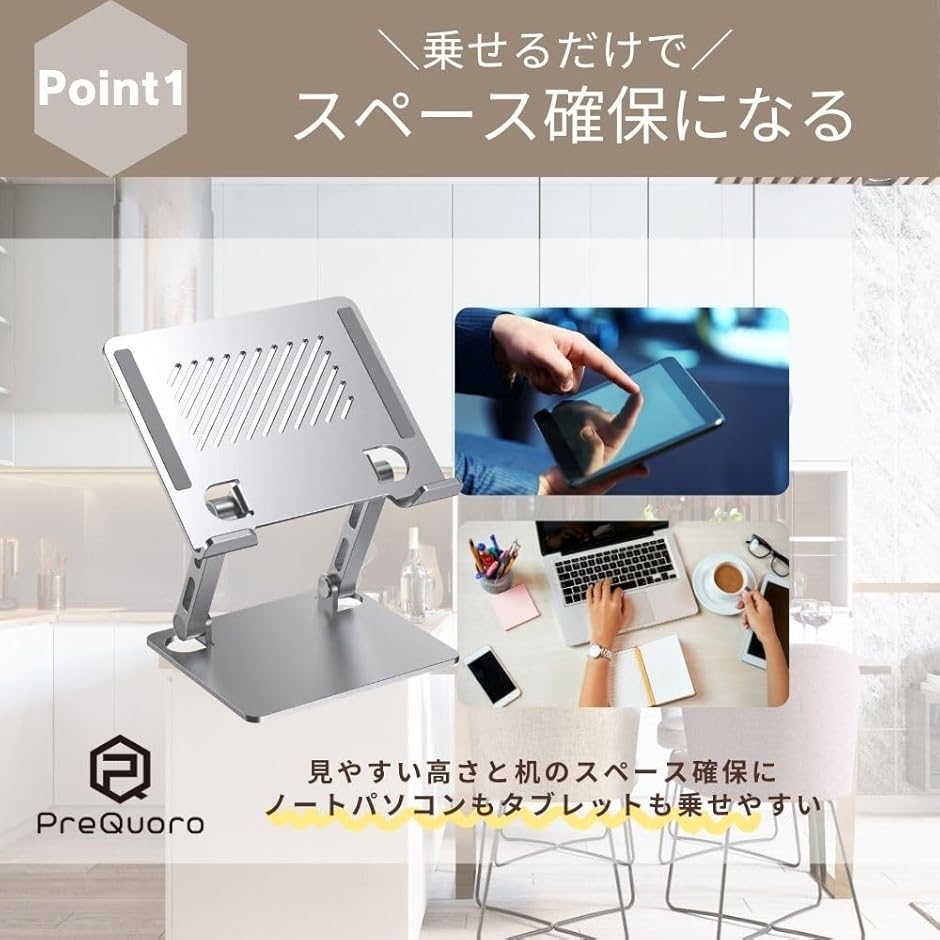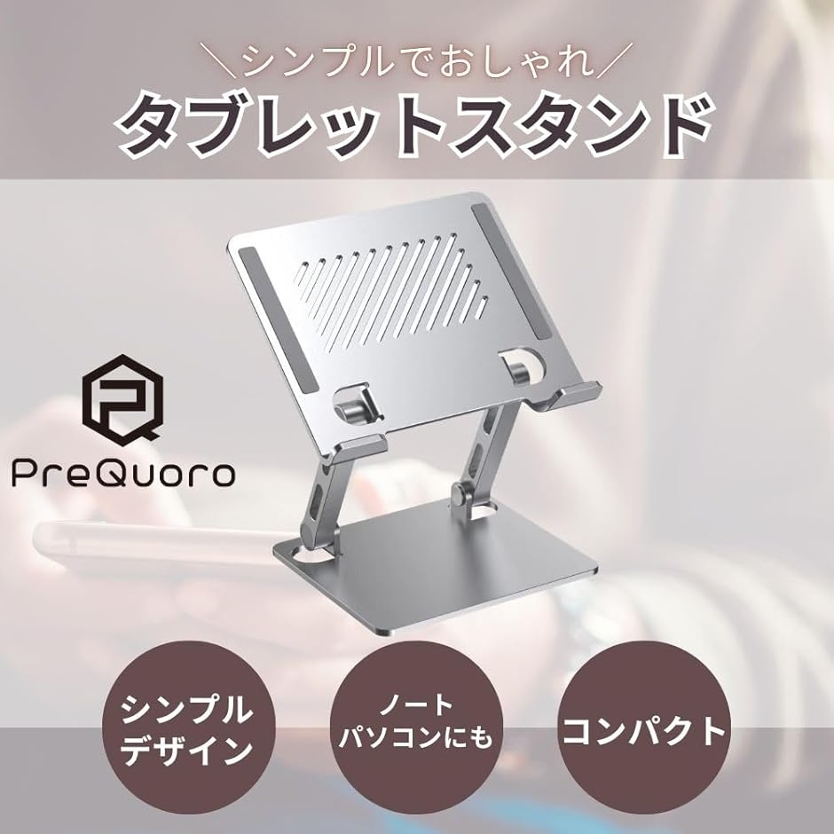 - 「シルバーの洗練されたデザイン」どんなインテリアにも調和するスタイリッシュな外観で高級感あふれる素材感が魅力。軽量でありながら、しっかりとした安定性があり作業中の姿勢をサポートします。「ノマドワーカーに最適なアイテム」カフェでの作業も快適に。自由なライフスタイルを実現するためのパートナー。狭い机の上などどこでも快適な作業空間を作り出すことが可能です。特に移動が多い方におすすめ。「タブレットスタンドとしての機能も充実」多様なデバイスに対応する柔軟性。シーンに応じて使い分けが可能です。リモートワークやオンライン授業にも最適。「タブレットからノートPCまで」幅広いサイズの機器に対応します。本体サイズは 16.5x12(cm)/ 重量 約680gPreQuoroの製品は、オリジナルロゴを印刷したOPP袋に入っている、もしくは袋が添付しております。※ 他ネットショップでも併売しているため、ご注文後に在庫切れとなる場合があります。予めご了承ください。※ 品薄または希少等の理由により、参考価格よりも高い価格で販売されている場合があります。ご注文の際には必ず販売価格をご確認ください。※ 沖縄県、離島または一部地域の場合、別途送料の負担をお願いする場合があります。予めご了承ください。※ お使いのモニタにより写真の色が実際の商品の色と異なる場合や、イメージに差異が生じることがあります。予めご了承ください。※ 商品の詳細(カラー・数量・サイズ 等)については、ページ内の商品説明をご確認のうえ、ご注文ください。※ モバイル版・スマホ版ページでは、お使いの端末によっては一部の情報が表示されないことがあります。すべての記載情報をご確認するには、PC版ページをご覧ください。
