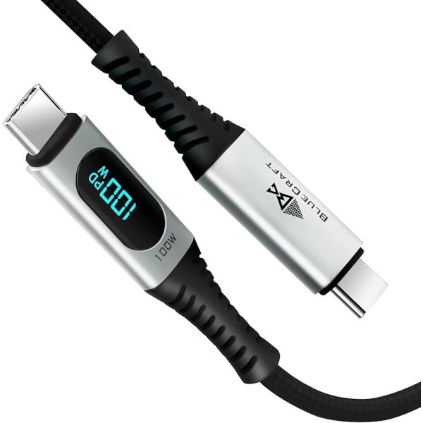 BLUECRAFT Type-C メーター付ケーブル LED出力スクリーン表示(ブラック, 0.5m)