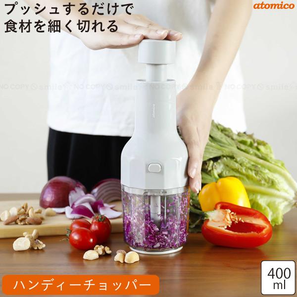 atomico ハンディーチョッパー at-04 / ハンディ チョッパー 手動 プッシュ みじん切り フード プロセッサー スライサー 回転 コンパクト 調理器具