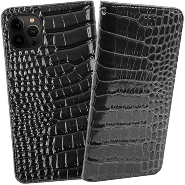 クロコダイル x 牛革 iPhone14 Pro apple . 手帳型 レザー ケース MDM(ブラック, iphone 14pro)