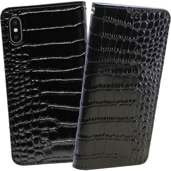 クロコダイル x 牛革 iPhoneXS apple . 手帳型 レザー ケース MDM(ブラック, iphoneX/XS)