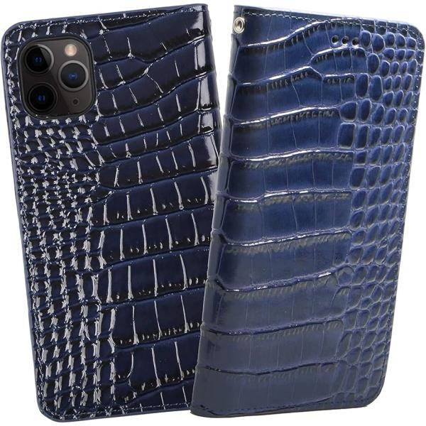 クロコダイル x 牛革 iPhone12 Pro Max apple . 手帳型 レザー MDM(ブルー, iphone12Pro Max)