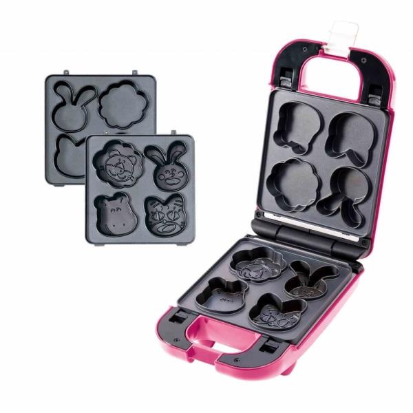 - 【商品特長】■1度に4キャラクターの顔のカステラが作れる材料を入れてふたを閉めるだけ。たったの約3分でたべっ子どうぶつのかわいいカステラが焼き上がります。ホットケーキミックスを使用すれば、生地作りも簡単。生地やトッピングをアレンジしたり、お子様と一緒に手作りおやつにチャレンジするのもオススメです。■カステラの作り方1.電源を入れて予熱したプレートに生地を流し込みます。2.フタを閉めて約3分待ちます。3.好みの焼き加減まで焼けたら完成です。<キレイに焼くコツ>※取説に記載の分量で生地を作ることを推奨します。※適量の生地をできるだけ素早く流し入れてフタを閉めると、きれいな形・焼き色に焼き上がりやすくなります。計量カップを使用すると、生地を素早く流し込めます。■アレンジいろいろ上下半分に切ってクリームやフルーツを挟んだり、パフェのトッピングにすれば、かわいい手作りスイーツのできあがり!いろいろなアレンジが楽しめます。■フッ素樹脂加工&着脱式プレートフッ素樹脂加工で焦げ付きにくくなっています。油をひかずに調理できるのでノンオイルでヘルシー。着脱式プレートなので、水洗いできてお手入れ簡単です。■電源コードすっきり本体の裏面にコードが巻けるので、スッキリ収納できます。■縦置きコンパクト収納立てて収納できるので、狭いキッチンでも置く場所に困りません。サッと取り出して手軽に使えます。【仕様】・型番KDHS-018P・商品名たべっ子どうぶつカステラメーカー・JAN4573468824144 ・定格電圧AC100V・定格周波数50/60Hz・定格消費電力650W・温度ヒューズ240℃・本体サイズ約 W150 x D240 x H110 mm・本体重量約 1,200g・電源コード約 0.9m・セット内容本体、たべっ子どうぶつカステラプレート・材質フェノール樹脂、アルミニウム(フッ素樹脂加工)【特長】たべっこ、たべっこどうぶつ、たべっこ動物、たべっ子、ギンビス、ギンビスコラボ、ライソン、たべっ子どうぶつ【送料について】 北海道、沖縄、離島は別途送料を頂きます。本製品についてのお問い合わせは下記サポート窓口までお願い致します。LITHON株式会社 サポート窓口06-6789-1199(月〜金(祝日除く)10時〜16時)※休み明けの午前中は混みあいますので避けていただきますようお願い致します。たべっ子どうぶつカステラメーカー本体+プレート(らいおんさん/うさぎさん/かばさん/ねこさん)プレートA(きりんさん/さるさん/ぱんださん/とらさん)プレートB(わにさん/ひよこさん/こあらさん/ぞうさん)