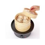 - 【商品説明】●水分を加えながら均一に加熱するので、電子レンジよりふっくらムラなく蒸せます●水と食材を入れてタイマーをセットするだけ!●ダイヤルで簡単にタイマー設定可能●火を使わないからほったらかし調理OK●肉まん・蒸し鶏・蒸し野菜●冷凍食品や市販の惣菜もよりおいしく●レシピ・お手入れ方法がわかるガイド冊子付【仕様】●色/ブラック●サイズ:(約)幅18×奥行19×高さ9.5cm、受け皿:(約)φ22.5×高さ3cm、せいろセット(15cm):(約)φ15×高さ8.5cm、電源コード:約1.4m●重さ:本体+受け皿:(約)550g、せいろセット(15cm):(約)340g●素材/本体・受け皿:PP、せいろ:竹●定格電圧:AC100V●定格周波数:50/60Hz●消費電力:400W●温度ヒューズ:133度●本体容量:MAX500ml●タイマー時間:最大30分●セット内容:本体、せいろセット(15cm)、受け皿、ガイド冊子●1年間保証書付き
