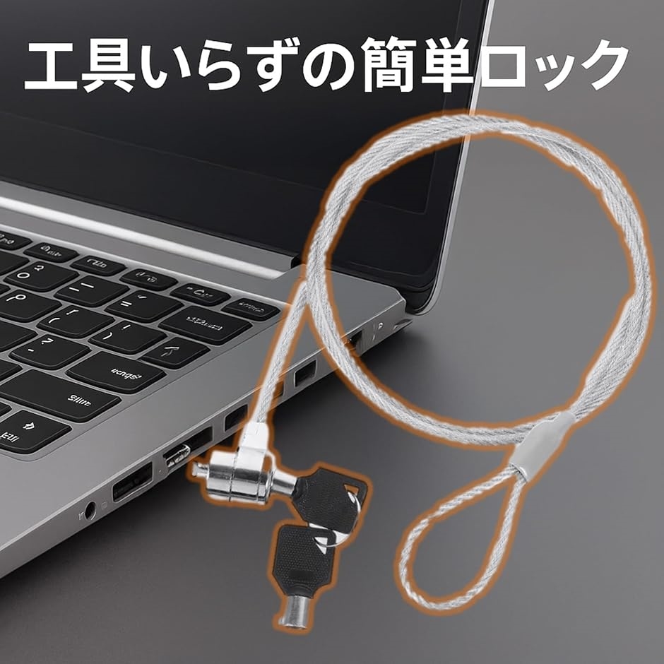 - パソコンをしっかりと固定し、盗難のリスクを軽減させるPC用ワイヤーロックです。2本セットにてご用意いたしましたので、複数のパソコンのセキュリティを守ることができます。スペアキー付きで、鍵の紛失等の万一の時にも対応可能です。鍵を差し込むだけで簡単にロック・アンロックができ、複雑な操作が不要ですので、どなたにでも手軽に使用できます。長さ約1.8mで自由に取り回しが可能な頑丈なワイヤーを使用しており、切断されにくい構造です。見た目的にも、潜在的に盗難を抑止する効果を期待できます。パソコンだけでなく、自転車やバッグなど様々なアイテムの防犯にもご活用いただくことが可能です。軽量コンパクトですので、持ち歩きも簡単ですので、様々なシーンでご使用いただくことができます。サイズ(約): 1.8m※ 他ネットショップでも併売しているため、ご注文後に在庫切れとなる場合があります。予めご了承ください。※ 品薄または希少等の理由により、参考価格よりも高い価格で販売されている場合があります。ご注文の際には必ず販売価格をご確認ください。※ 沖縄県、離島または一部地域の場合、別途送料の負担をお願いする場合があります。予めご了承ください。※ お使いのモニタにより写真の色が実際の商品の色と異なる場合や、イメージに差異が生じることがあります。予めご了承ください。※ 商品の詳細(カラー・数量・サイズ 等)については、ページ内の商品説明をご確認のうえ、ご注文ください。※ モバイル版・スマホ版ページでは、お使いの端末によっては一部の情報が表示されないことがあります。すべての記載情報をご確認するには、PC版ページをご覧ください。(仕様)サイズ(約): 1.8mセット数: 2本*モニターの環境により、色の見え方に若干差が生じる場合があります。