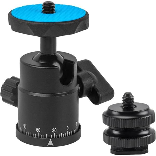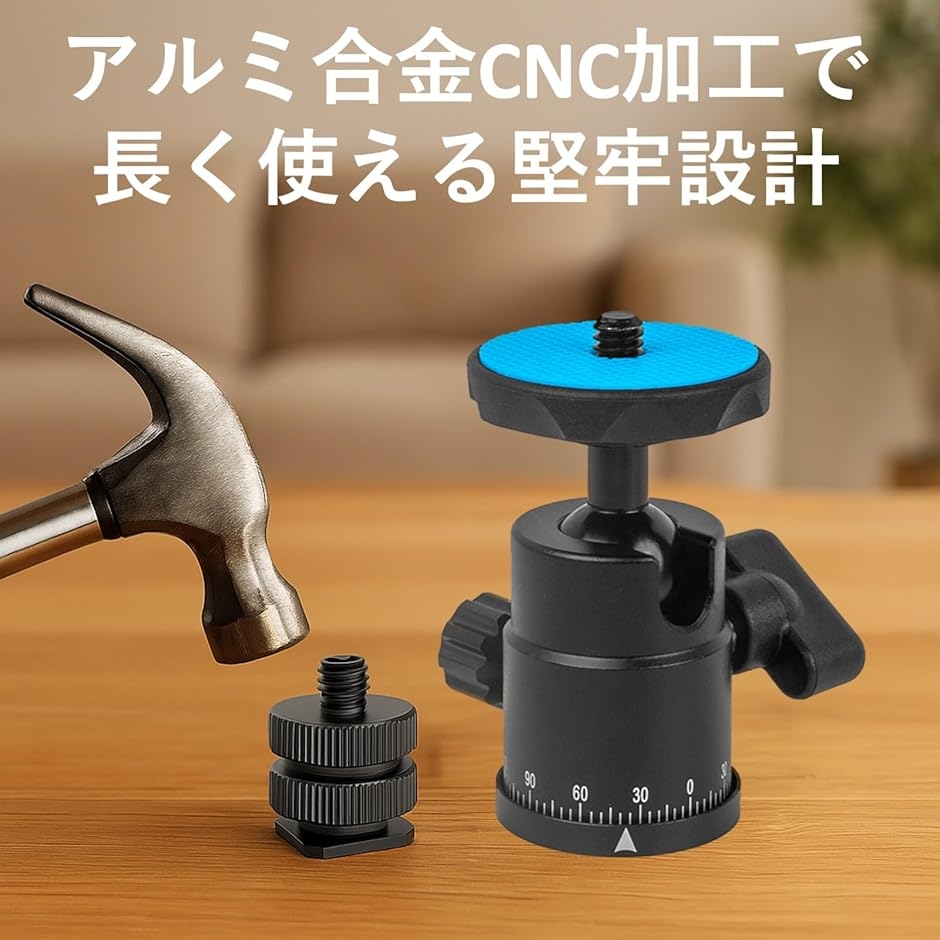 自由雲台 ボールヘッド 360度回転 1/4ネジ コールドシューマウント 耐荷重2kg カメラ 三脚用 (ブルー)