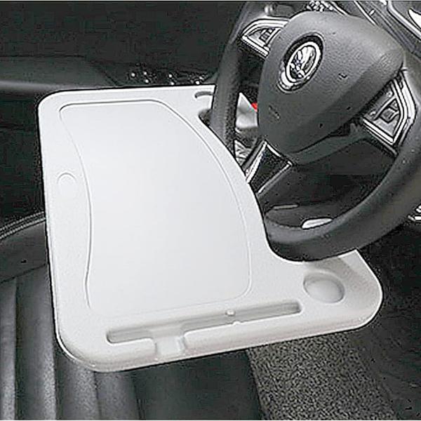 ・v「カーテーブル」車の運転席でノートパソコンやタブレットを広げて仕事をしたり、食事用のテーブルとして簡単にサッと出してハンドル(ステアリングホイール)に固定して利用出来る、車載テーブル、パソコンデスク、ランチプレートです。