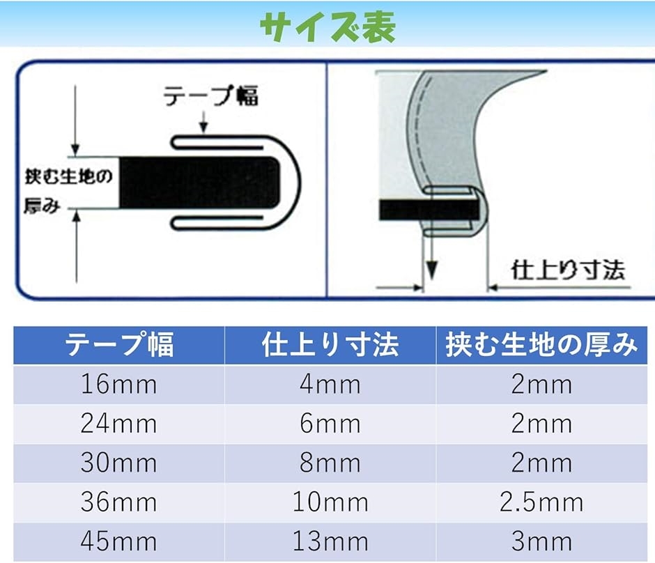 「テープ幅>仕上り寸法」16mm>4mm, 24mm>6mm, 30mm>8mm, 36mm>10mm, 45mm>13mm *サイズはおおよその値です - 楽天での商品説明(スピード発送 Reapri(リアプリ))