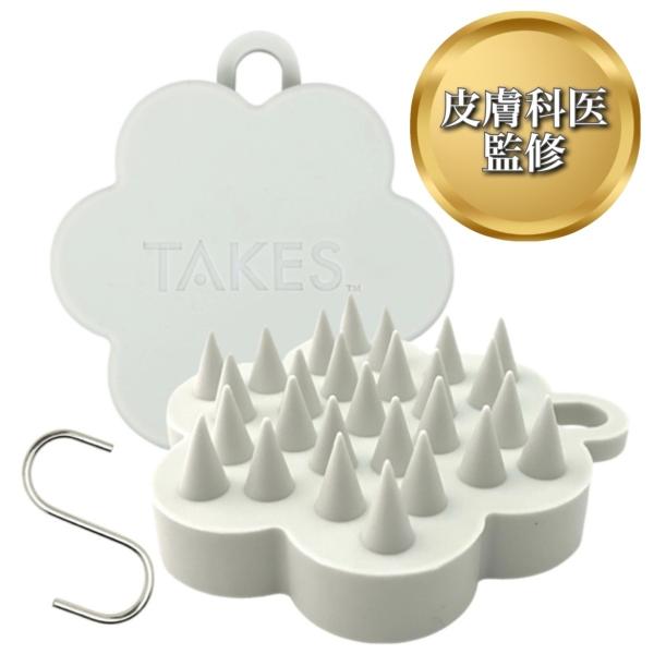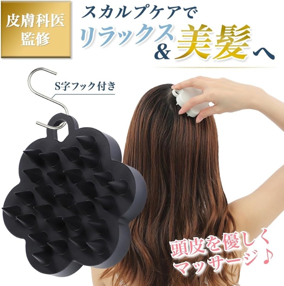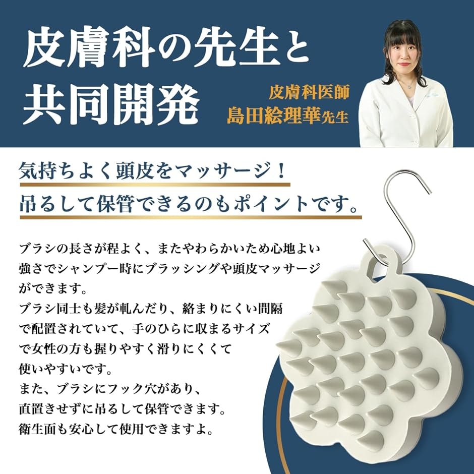 皮膚科医監修 シャンプーブラシ 頭皮マッサージ ヘッドスパ 頭皮ケア S字フック付き (ライトグレー)