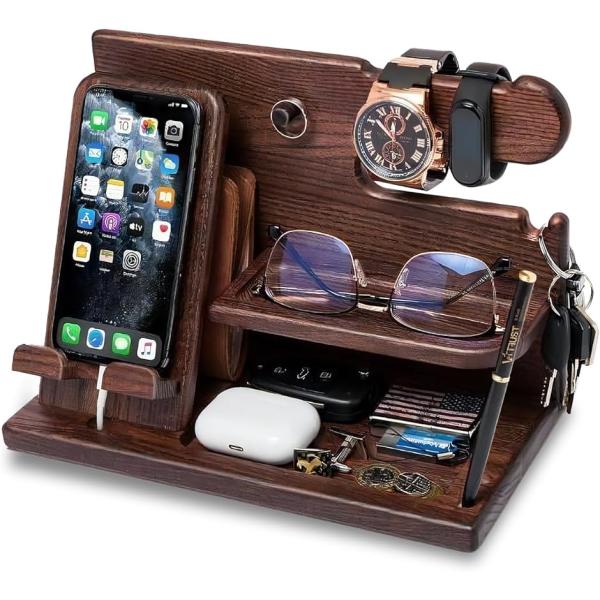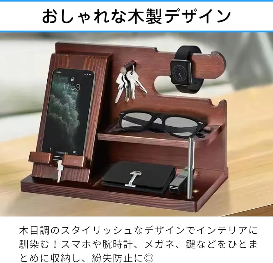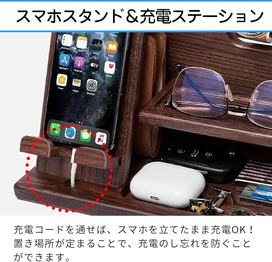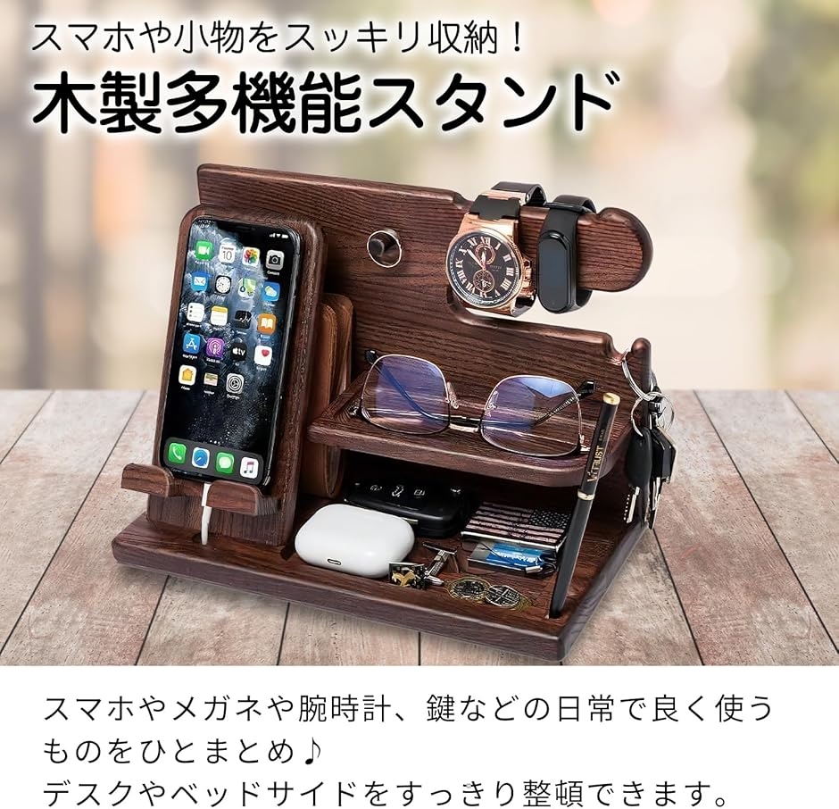 スマホスタンド 木製 収納ペン立て メンズギフト 誕生日 プレゼント 男性 父の日 おしゃれ 腕時計 メガネスタンド(ナチュラルウッド)