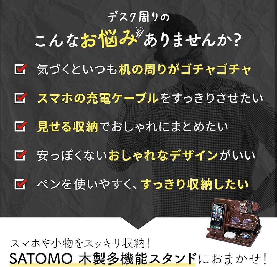 - ※ 他ネットショップでも併売しているため、ご注文後に在庫切れとなる場合があります。予めご了承ください。※ 品薄または希少等の理由により、参考価格よりも高い価格で販売されている場合があります。ご注文の際には必ず販売価格をご確認ください。※ 沖縄県、離島または一部地域の場合、別途送料の負担をお願いする場合があります。予めご了承ください。※ お使いのモニタにより写真の色が実際の商品の色と異なる場合や、イメージに差異が生じることがあります。予めご了承ください。※ 商品の詳細(カラー・数量・サイズ 等)については、ページ内の商品説明をご確認のうえ、ご注文ください。※ モバイル版・スマホ版ページでは、お使いの端末によっては一部の情報が表示されないことがあります。すべての記載情報をご確認するには、PC版ページをご覧ください。商品ページをご覧頂き、誠にありがとうございます。スマホも小物もスッキリ収納!木製多機能スタンドです。スマホやメガネ、腕時計、鍵など毎日使うアイテムをひとまとめに収納。デスク周りやベッドサイドがスッキリ片付きます。「木製デザイン」木目を生かしたスタイリッシュなデザインで、インテリアに馴染みやすい!スマホ、腕時計、メガネ、サングラス、イヤホン、鍵、ペンなどを一箇所に収納することで、もう探さない!失くさない!「スマホスタンド&充電ステーション」充電コードを通せば、スマホを立て掛けたまま充電可能!毎日の充電ステーションとしてご使用いただけます。置き場所が定まることで、充電のし忘れを防ぐことができます。「ギフトにも最適。」組み立て式でコンパクト!高級感のあるデザインで、父の日、お誕生日、記念日のプレゼントとしても喜ばれること間違いなし!プライベートだけでなくビジネスシーンでもご使用いただけます。「商品詳細」セット内容:1個 カラー:ナチュラルウッド サイズ:約25.5x15x19cm材質:木*モニターの環境により色の見え方に若干差が生じる場合がございます。