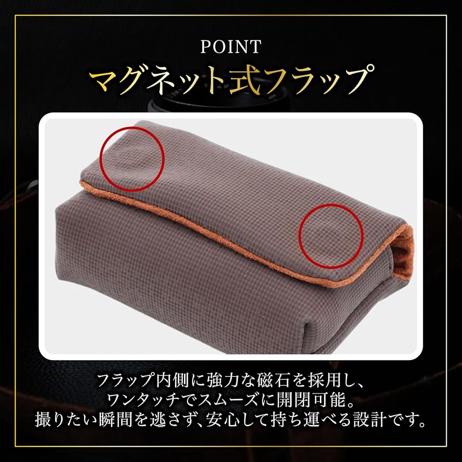 - バリエーションコード : 2buclcigq3商品コード2bucn8w83u商品名コンデジ ケース デジカメ カメラ収納ポーチ コンパクトカメラ 収納ケース 保護 小型 軽量 携帯用 衝撃吸収ブランドSATOMOカラーブラウンデジカメの携帯や保護に。シンプルでスタイリッシュなデザインのデジカメ収納ケースです。柔らかな生地とマイクロファイバーレザーが大切なカメラを衝撃や傷から保護。持ち運びに便利なコンパクトタイプです。「さまざまなシーンで大活躍」旅行時の持ち歩きに/イベントや運動会での撮影時に/日常のお出かけや散歩で気軽に撮影したいときに/SDカードや予備バッテリーも一緒に持ち運びたいときに「出し入れに便利なマグネット式フラップ」フラップ内側に強力な磁石を採用し、ワンタッチでスムーズに開閉可能。撮りたい瞬間を逃さず、安心して持ち運べる設計です。誤開閉のリスクも軽減します。「小物収納に便利なポケット付き」ケース内側にはSDカードや予備電池を収納できるポケット付き。ストラップを付けたまま収納でき、取り出しもスムーズ。軽量でかさばらず、片手に収まるコンパクトさも魅力です。「商品詳細」セット内容:カメラ収納ポーチx1 カラー:レッド/ベージュ/ブラック/ブラウン/グレー サイズ:内寸 約幅11cmx高さ7cmx奥行4cm 材質:マイクロファイバーレザー(外側)、フェイクスエード(内側)、マグネット *モニター環境により色味が異なる場合がございます。※ 他ネットショップでも併売しているため、ご注文後に在庫切れとなる場合があります。予めご了承ください。※ 品薄または希少等の理由により、参考価格よりも高い価格で販売されている場合があります。ご注文の際には必ず販売価格をご確認ください。※ 沖縄県、離島または一部地域の場合、別途送料の負担をお願いする場合があります。予めご了承ください。※ お使いのモニタにより写真の色が実際の商品の色と異なる場合や、イメージに差異が生じることがあります。予めご了承ください。※ 商品の詳細(カラー・数量・サイズ 等)については、ページ内の商品説明をご確認のうえ、ご注文ください。※ モバイル版・スマホ版ページでは、お使いの端末によっては一部の情報が表示されないことがあります。すべての記載情報をご確認するには、PC版ページをご覧ください。