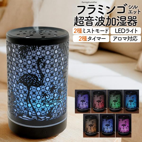 超音波加湿器 フラミンゴシルエット型 USB電源式 加湿器 2種ミストモード LEDライト タイマー リモコン付き アロマディフューザー スチーマー インテリア
